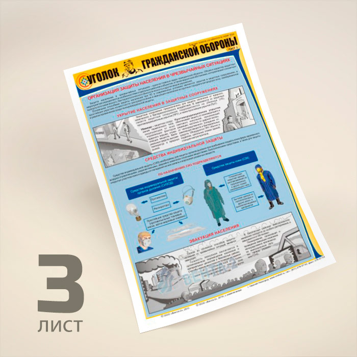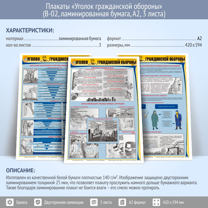 Плакаты «Уголок гражданской обороны» (В-02, ламинированная бумага, А2, 3 листа) в Обнинске купить