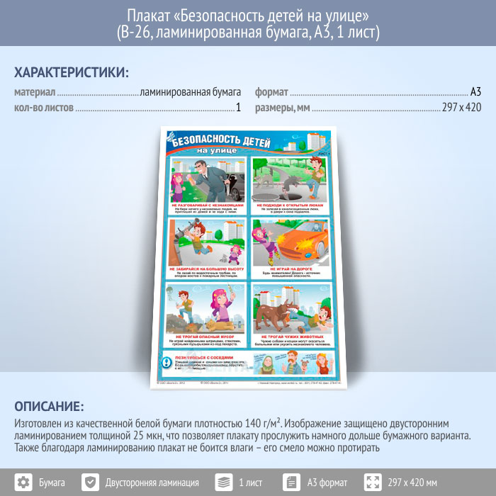 Плакат «Безопасность детей на улице» (В-26, ламинированная бумага, А3, 1 лист) в Обнинске купить