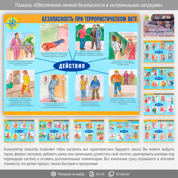 Плакаты «Обеспечение личной безопасности в экстремальных ситуациях» (АР-06, 10 листов) в Обнинске купить