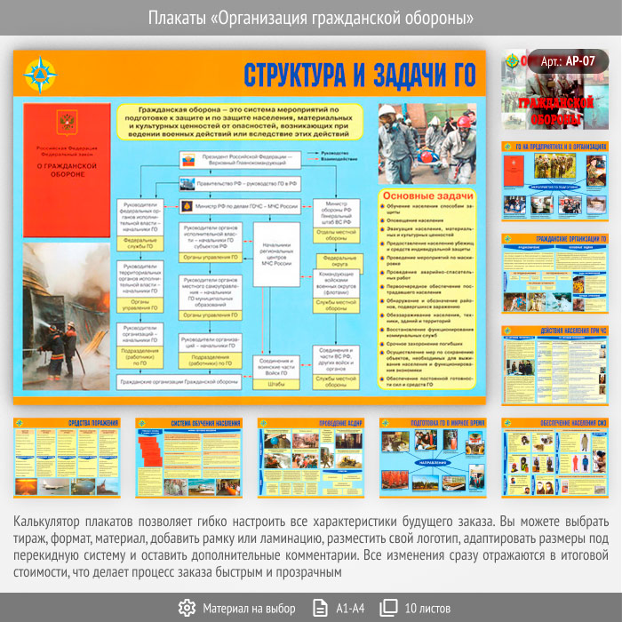 Плакаты «Организация гражданской обороны» (АР-07, 10 листов) в Обнинске купить