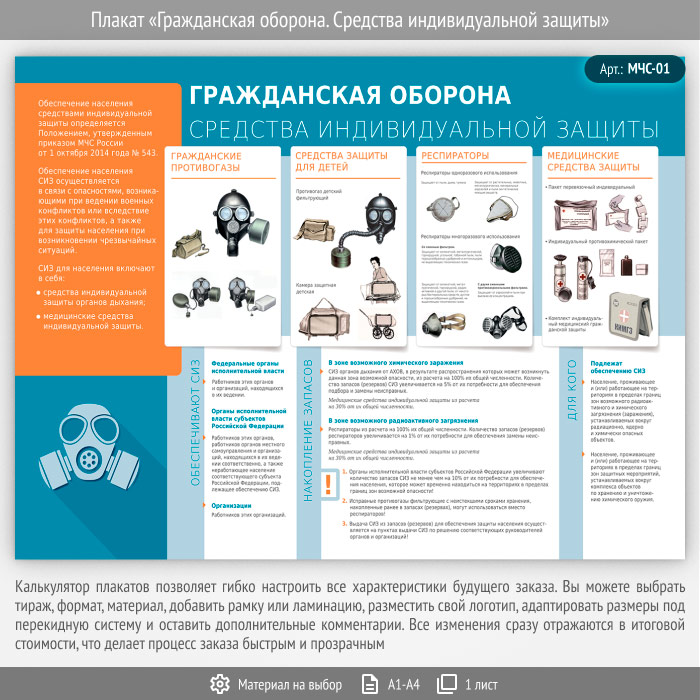 Плакат «Гражданская оборона. Средства индивидуальной защиты» (МЧС-01, 1 лист) в Обнинске купить