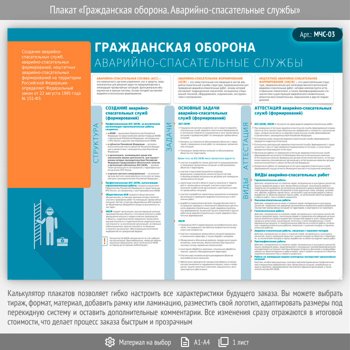 Плакат «Гражданская оборона. Аварийно-спасательные службы» (МЧС-03, 1 лист) в Обнинске купить