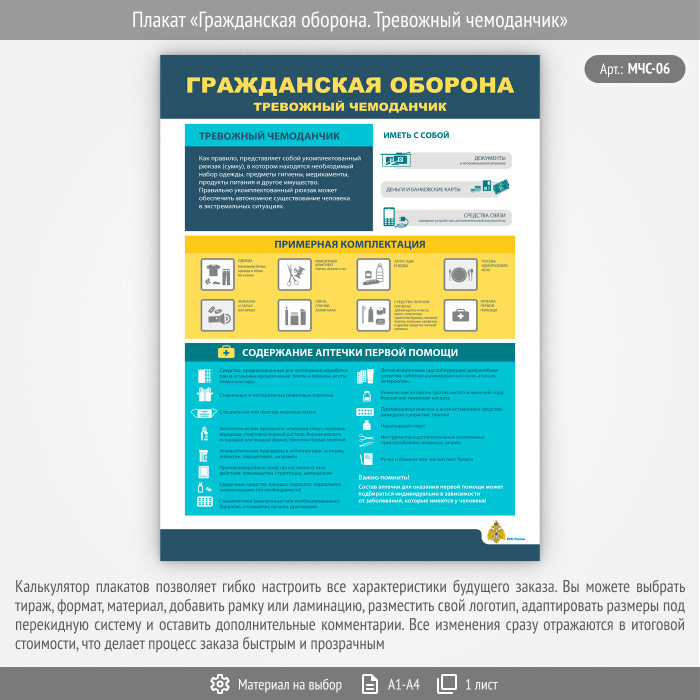 Плакат «Гражданская оборона. Тревожный чемоданчик» (МЧС-06, 1 лист) в Обнинске купить