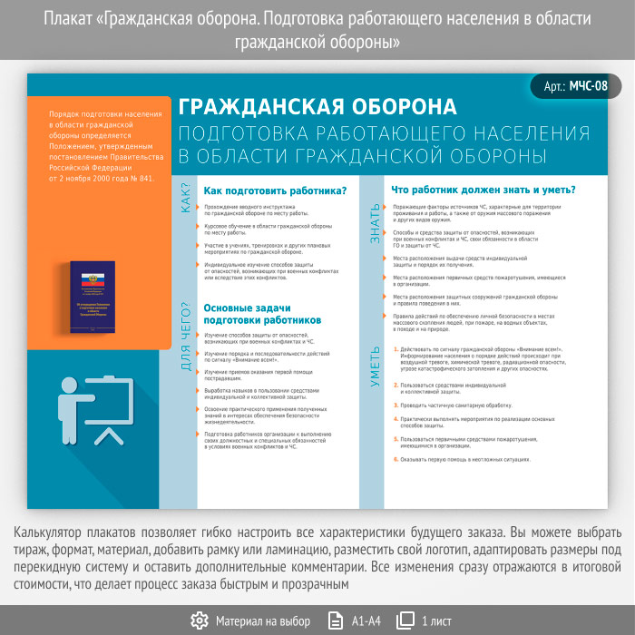 Плакат «Гражданская оборона. Подготовка работающего населения в области гражданской обороны» (МЧС-08, 1 лист) в Обнинске купить
