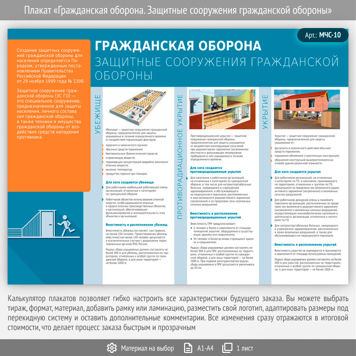 Плакат «Гражданская оборона. Защитные сооружения гражданской обороны» (МЧС-10, 1 лист) в Обнинске купить