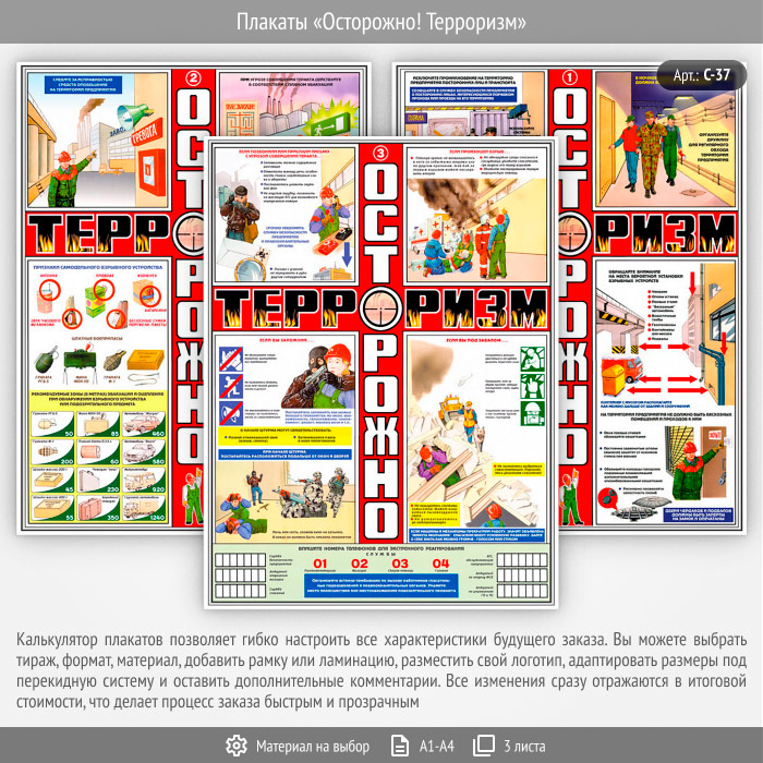 Плакаты «Осторожно! Терроризм» (С-37, 3 листа) в Обнинске купить