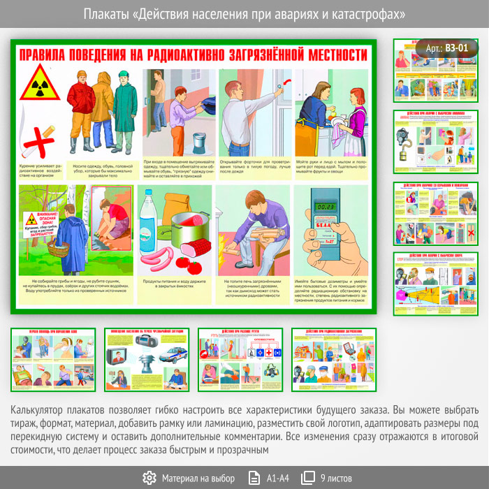 Плакаты «Действия населения при авариях и катастрофах» (ВЗ-01, 9 листов) в Обнинске купить