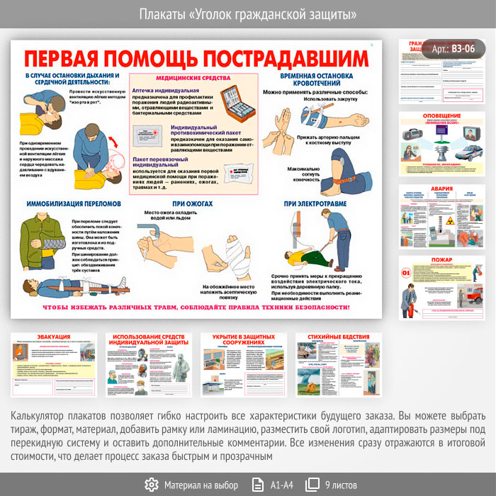 Плакаты «Уголок гражданской защиты» (ВЗ-06, 9 листов) в Обнинске купить