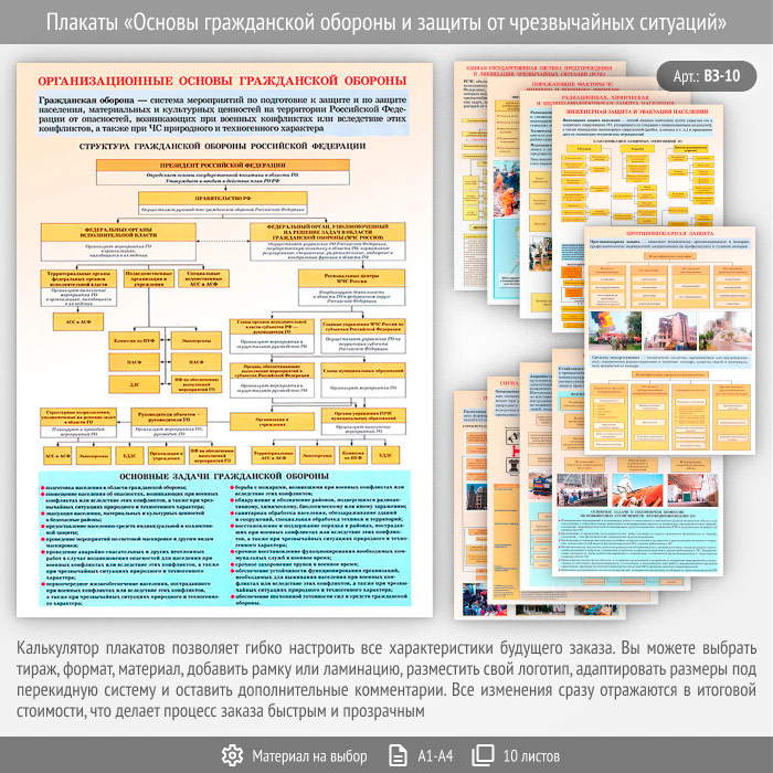 Плакаты «Основы гражданской обороны и защиты от чрезвычайных ситуаций» (ВЗ-10, 10 листов) в Обнинске купить