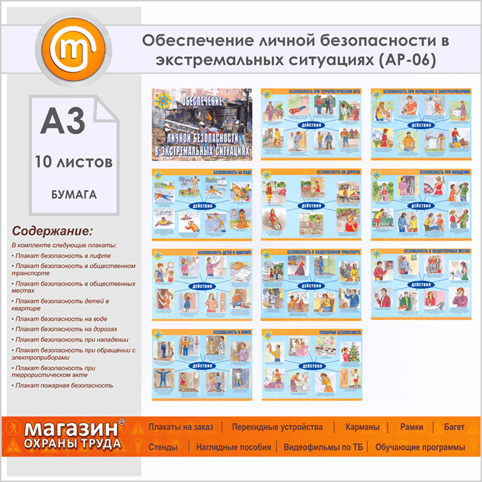 Плакаты «Обеспечение личной безопасности в экстремальных ситуациях» (АР-06, бумага, А3, 10 листов) в Обнинске купить