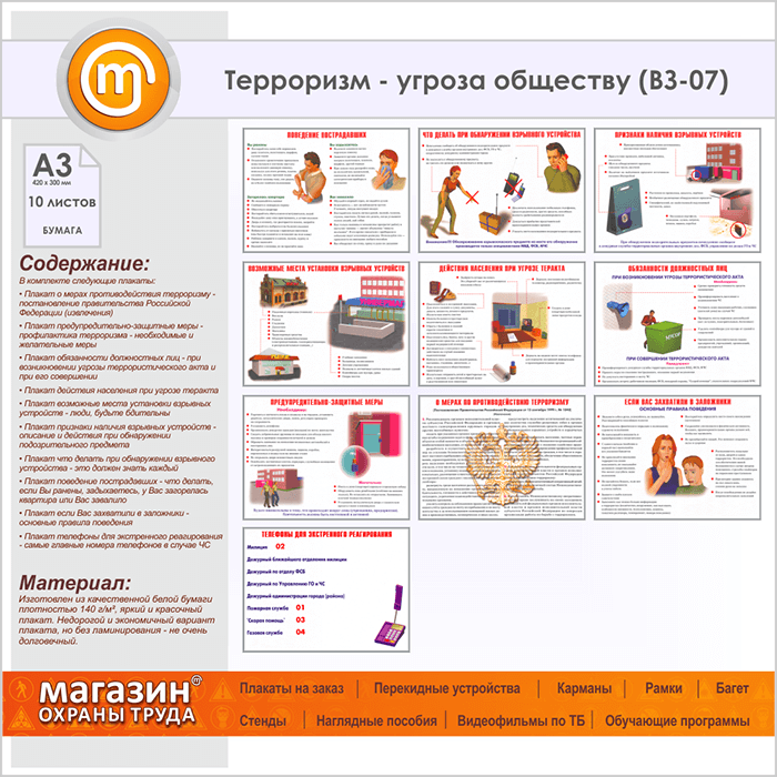 Плакаты «Терроризм - угроза обществу» (ВЗ-07, бумага, А3, 10 листов) в Обнинске купить