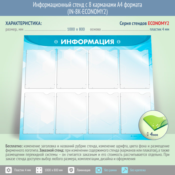 Информационный стенд с 8 карманами А4 формата (IN-8K-ECONOMY2) в Обнинске купить
