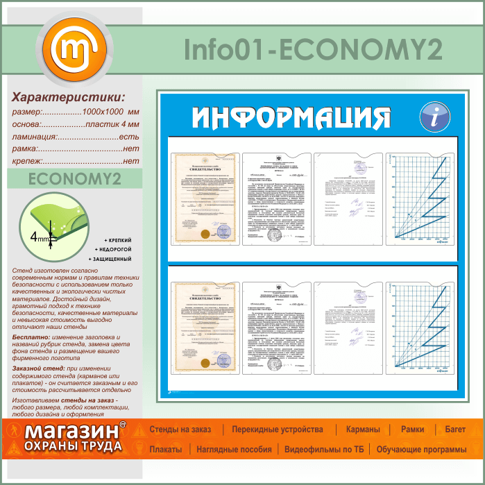 Стенд «Информация» с 8 карманами А4 формата (IN-01-ECONOMY2) в Обнинске купить