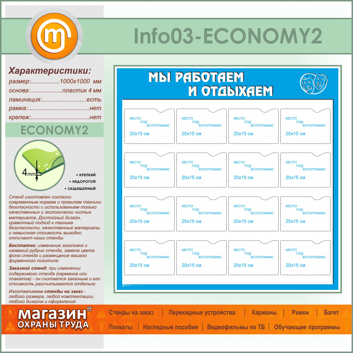 Стенд «Мы работаем и отдыхаем» с 16 карманами А5 формата (IN-03-ECONOMY2) в Обнинске купить