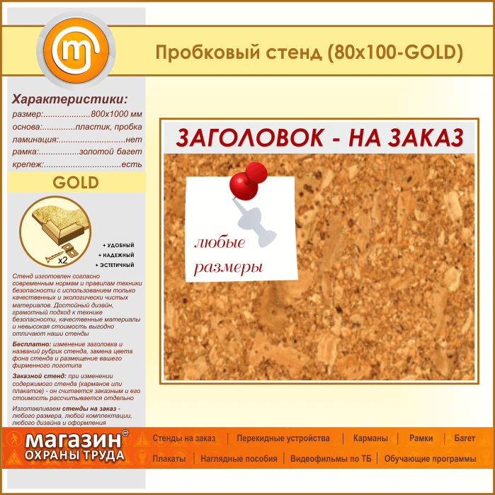 Пробковая доска с заголовком, 100х80 см (IN-06-GOLD) в Обнинске купить