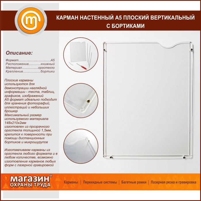 Карман настенный А5 плоский вертикальный с бортиками в Обнинске купить