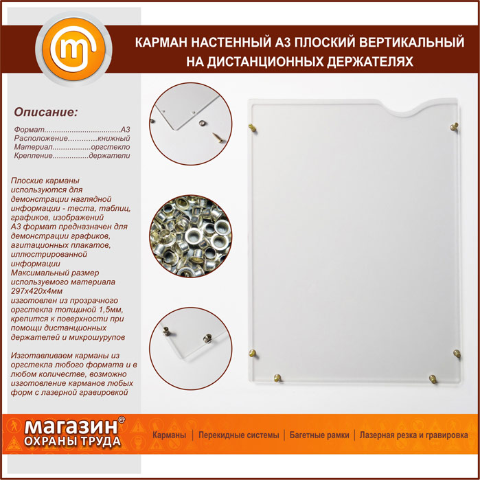 Карман настенный А3 плоский вертикальный на дистанционных держателях в Обнинске купить