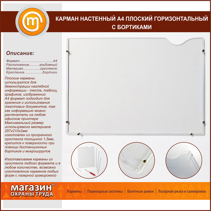 Карман настенный А4 плоский горизонтальный с бортиками в Обнинске купить