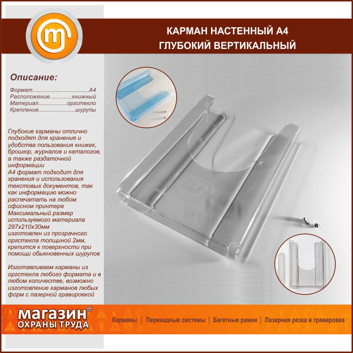 Карман настенный А4 объемный вертикальный в Обнинске купить