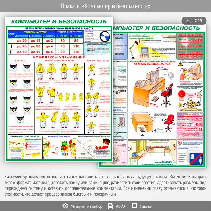Плакаты «Компьютер и безопасность» (С-15, 2 листа) в Обнинске купить