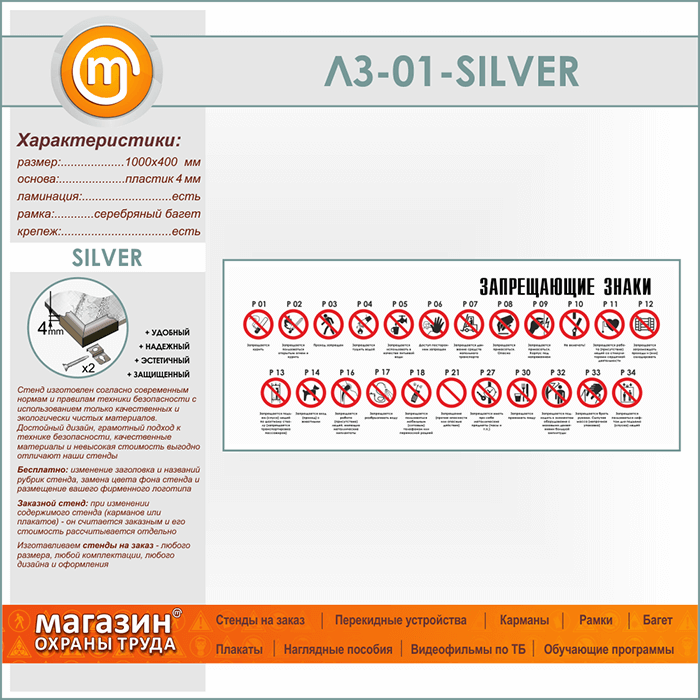 Стенд «Запрещающие знаки» (LZ-01-SILVER) в Обнинске купить