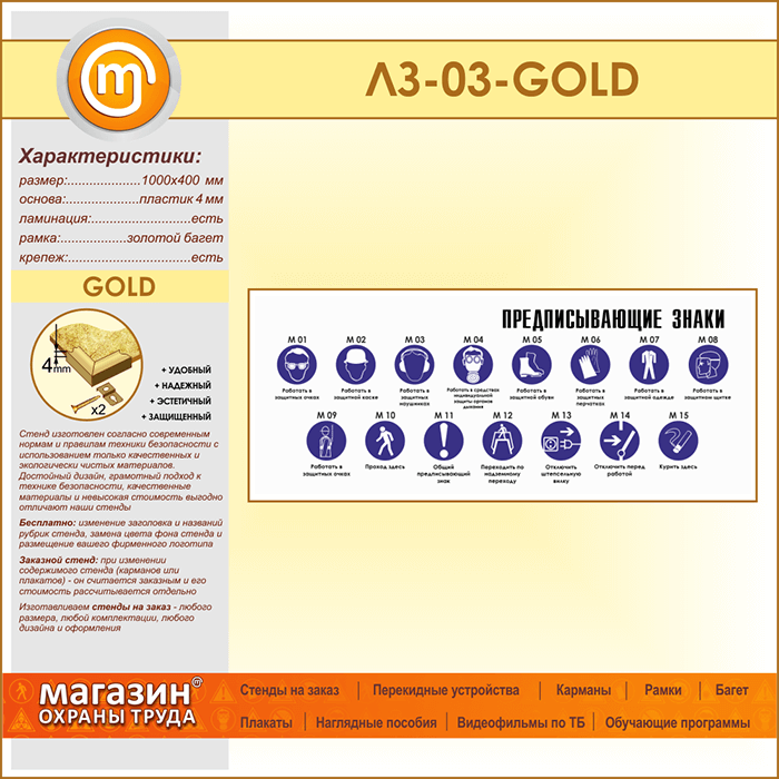 Стенд «Предписывающие знаки» (LZ-03-GOLD) в Обнинске купить