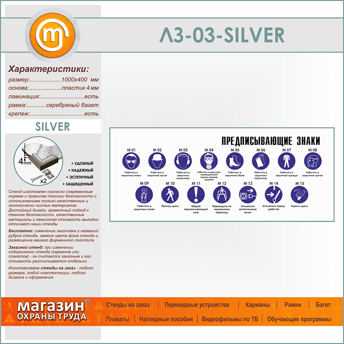 Стенд «Предписывающие знаки» (LZ-03-SILVER) в Обнинске купить