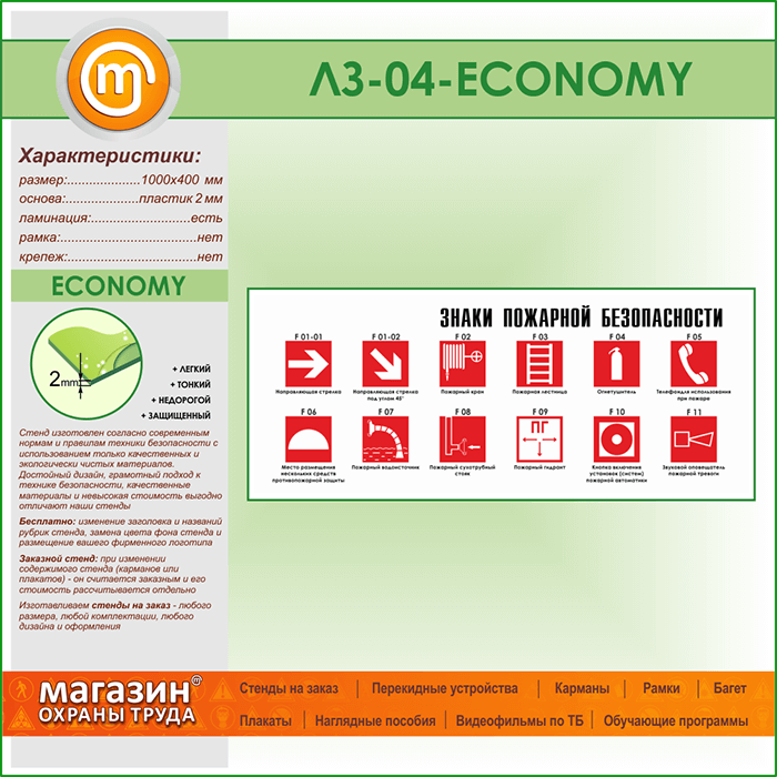 Стенд «Знаки пожарной безопасности» (LZ-04-ECONOMY) в Обнинске купить