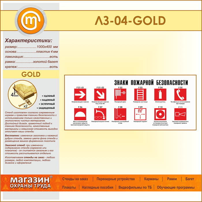 Стенд «Знаки пожарной безопасности» (LZ-04-GOLD) в Обнинске купить