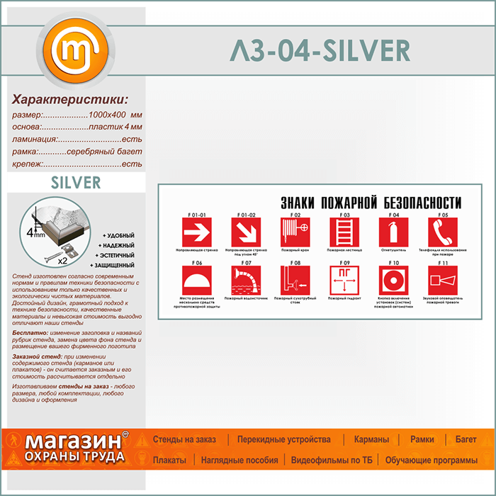 Стенд «Знаки пожарной безопасности» (LZ-04-SILVER) в Обнинске купить