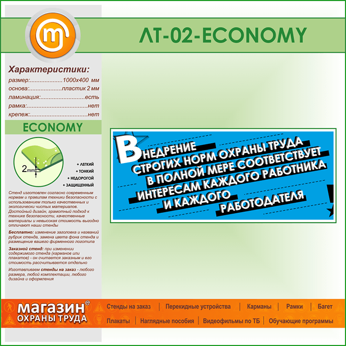 Лозунг «Внедрение строгих норм охраны труда...» (LT-02-ECONOMY) в Обнинске купить