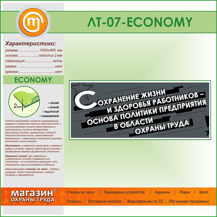 Лозунг «Сохранение жизни и здоровья работников...» (LT-07-ECONOMY) в Обнинске купить