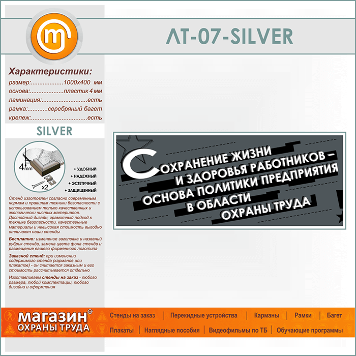 Лозунг «Сохранение жизни и здоровья работников...» (LT-07-SILVER) в Обнинске купить