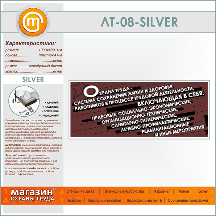 Лозунг «Охрана труда - система сохранения жизни и здоровья...» (LT-08-SILVER) в Обнинске купить