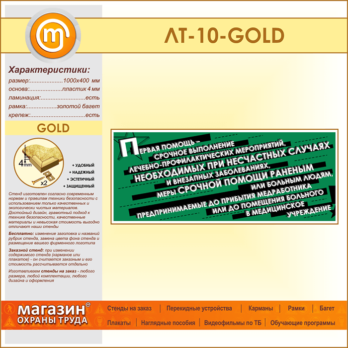Лозунг «Первая помощь - срочное выполнение...» (LT-10-GOLD) в Обнинске купить