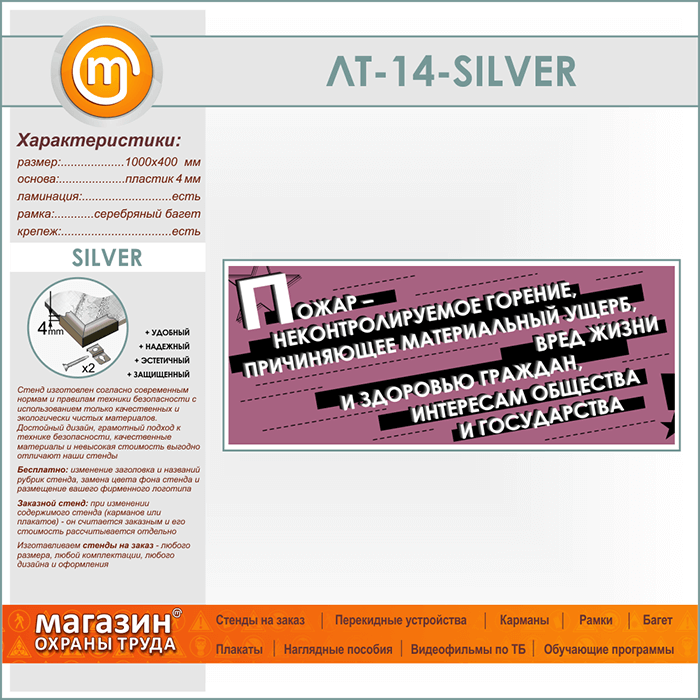 Лозунг «Пожар - неконтроллируемое горение...» (LT-14-SILVER) в Обнинске купить