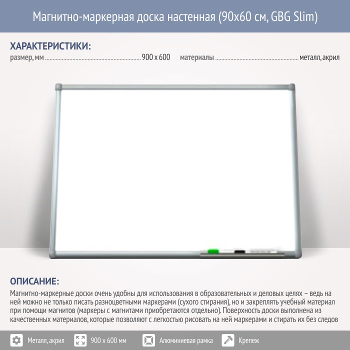 Магнитно-маркерная доска настенная (90x60 см, GBG Slim) в Обнинске купить
