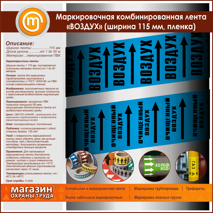 Маркировочная комбинированная лента «ВОЗДУХ» (ширина 115 мм, самоклеящаяся плёнка) в Обнинске купить