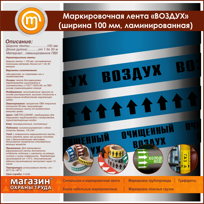 Маркировочная лента «ВОЗДУХ» (ширина 100 мм, самоклеящаяся плёнка с ламинированием) в Обнинске купить