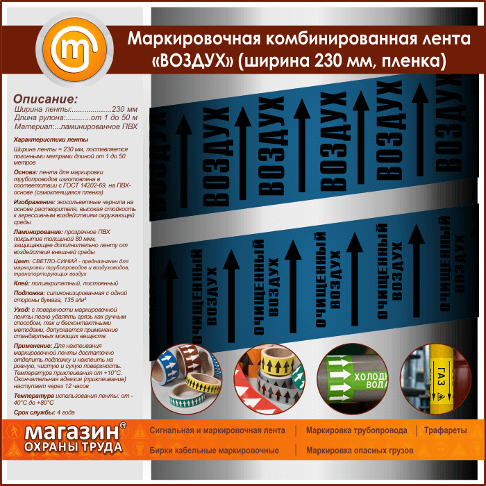 Маркировочная комбинированная лента «ВОЗДУХ» (ширина 230 мм, самоклеящаяся плёнка с ламинированием) в Обнинске купить