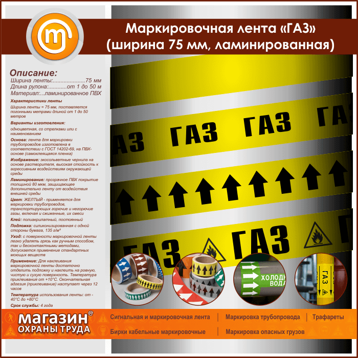 Маркировочная лента «ГАЗ» (ширина 75 мм, самоклеящаяся плёнка) в Обнинске купить
