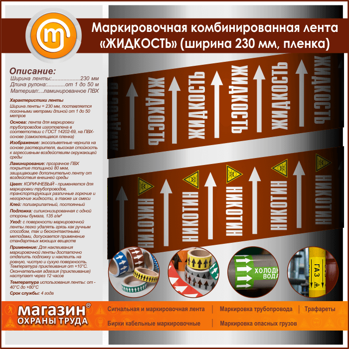 Маркировочная комбинированная лента «ЖИДКОСТЬ» (ширина 230 мм, самоклеящаяся плёнка) в Обнинске купить