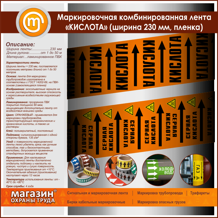 Маркировочная комбинированная лента «КИСЛОТА» (ширина 230 мм, самоклеящаяся плёнка) в Обнинске купить