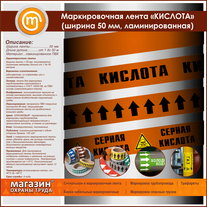 Маркировочная лента «КИСЛОТА» (ширина 50 мм, самоклеящаяся плёнка с ламинированием) в Обнинске купить