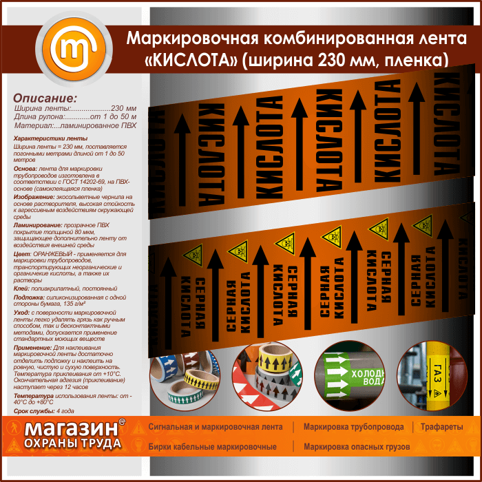 Маркировочная комбинированная лента «КИСЛОТА» (ширина 230 мм, самоклеящаяся плёнка с ламинированием) в Обнинске купить