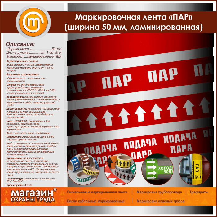 Маркировочная лента «ПАР» (ширина 50 мм, самоклеящаяся плёнка с ламинированием) в Обнинске купить