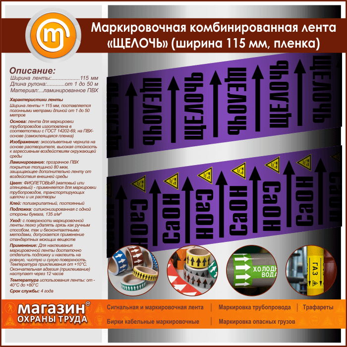 Маркировочная комбинированная лента «ЩЕЛОЧЬ» (ширина 115 мм, самоклеящаяся плёнка с ламинированием) в Обнинске купить