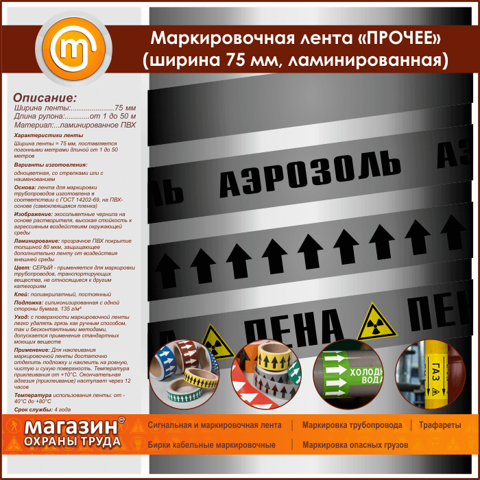 Маркировочная лента «ПРОЧИЕ ВЕЩЕСТВА» (ширина 75 мм, самоклеящаяся плёнка с ламинированием) в Обнинске купить