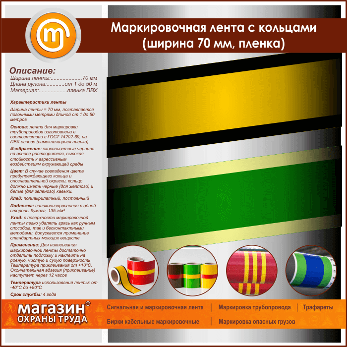 Маркировочная лента с кольцами (ширина 70 мм, самоклеящаяся плёнка) в Обнинске купить