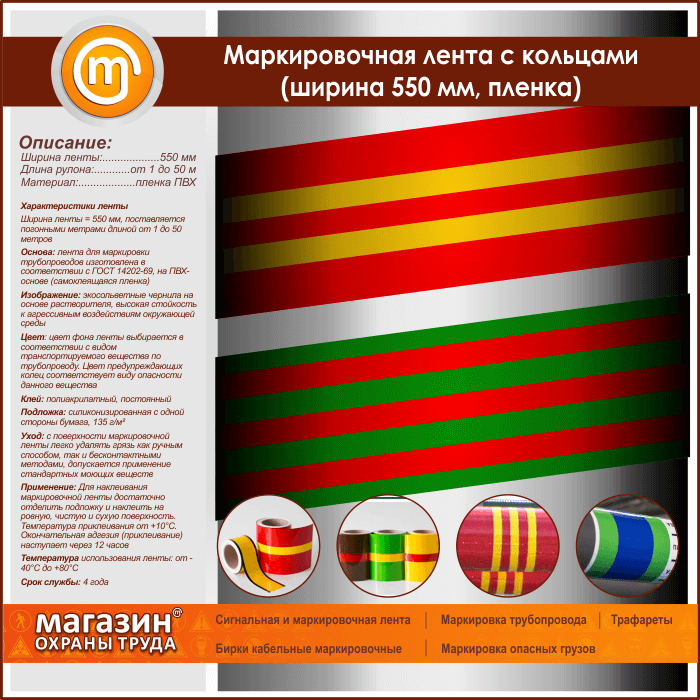 Маркировочная лента с кольцами (ширина 550 мм, самоклеящаяся плёнка) в Обнинске купить